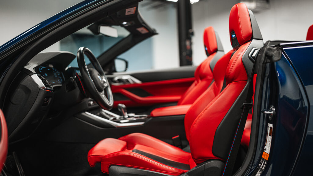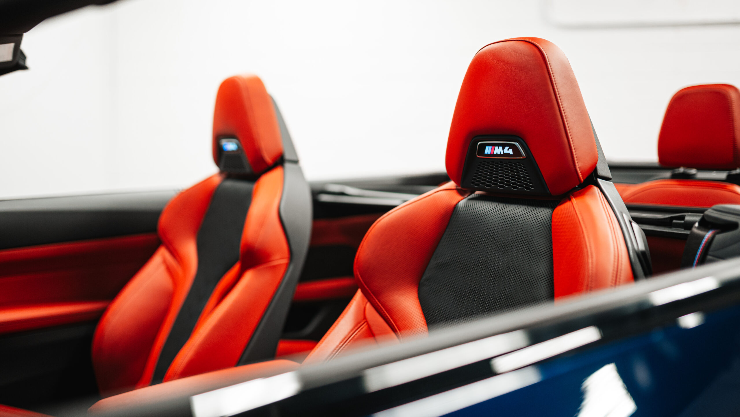 Prepare to be captivated by the sheer beauty and performance of our 2023 BMW M4 Competition Convertible. This extraordinary BMW M4 rental in New York turns heads with its frozen tanzanite blue metallic exterior and luxurious Red/black 2-tone full merino leather interior. With factory upgrades and exclusive enhancements, this convertible exudes luxury, performance, and exclusivity at every turn.