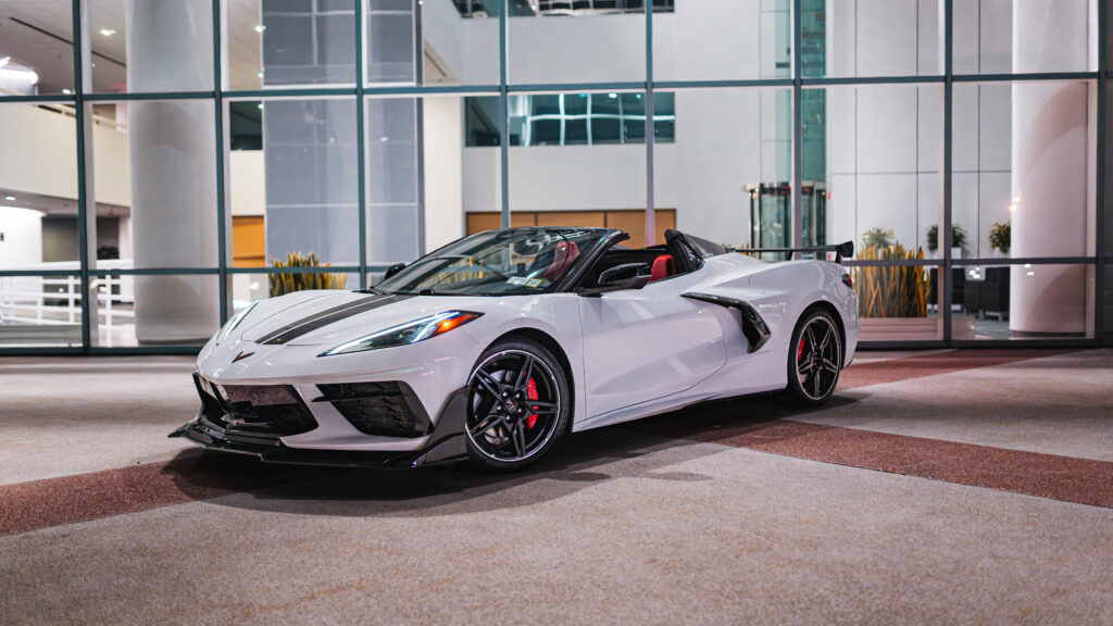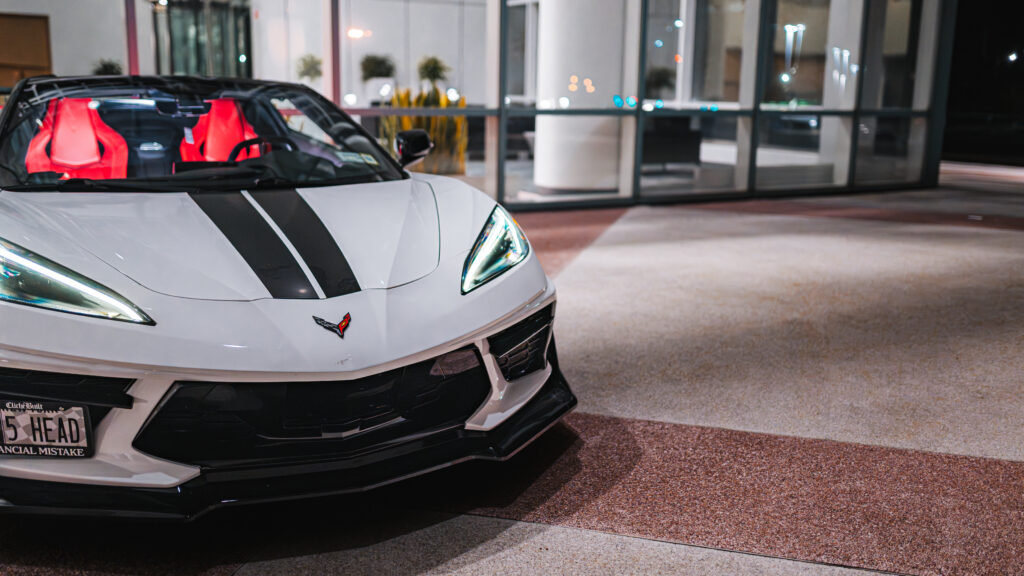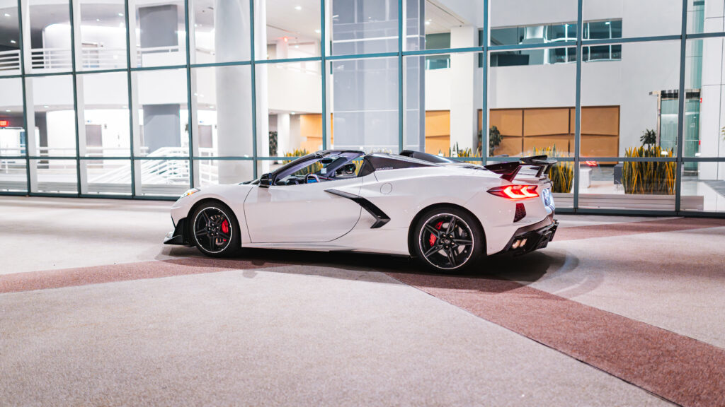 Experience the thrill of driving the 2023 Corvette Stingray Convertible, a vehicle that combines stunning aesthetics with exceptional performance. This eye-catching sports car features a sleek metallic silver exterior that beautifully complements its two-toned black and red interior. Under the hood, it boasts a powerful 6.2L V8 engine delivering an exhilarating 495 horsepower, paired with an 8-speed dual-clutch automatic transmission for seamless gear shifts and a truly dynamic driving experience. The Corvette Stingray is designed to captivate with its impressive performance and advanced technology. The state-of-the-art Chevrolet Infotainment 3 system ensures you stay connected on the go, offering a high-resolution touchscreen, navigation, and seamless integration with Apple CarPlay and Android Auto.