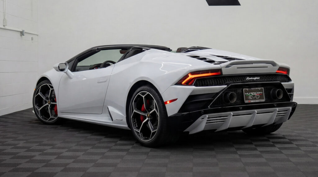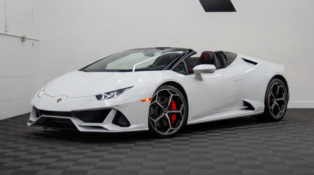 Experience the exhilaration of open-air performance with the Lamborghini Huracán Evo Spyder. This iconic supercar blends aggressive styling with precision engineering, delivering a driving experience that is both visceral and refined. Finished in a crisp white exterior, the Huracán Evo Spyder offers a striking presence that embodies Lamborghini’s unmistakable design language.