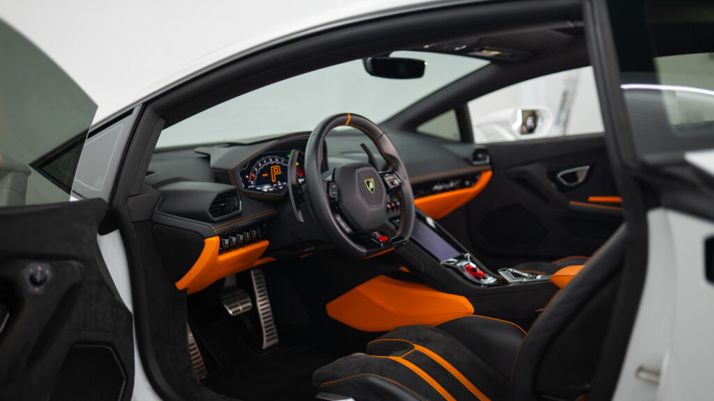 Sculpted with sharper aerodynamics and a bold, purposeful stance, the Tecnica commands attention from every angle. Its naturally aspirated 5.2-liter V10 delivers 631 horsepower to the rear wheels, launching from 0 to 60 mph in just 3.2 seconds. A recalibrated LDVI (Lamborghini Dynamic Vehicle Integration) system and rear-wheel steering ensure precise handling whether you’re navigating Manhattan streets or opening it up on the highway.
