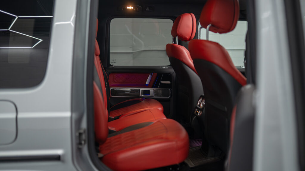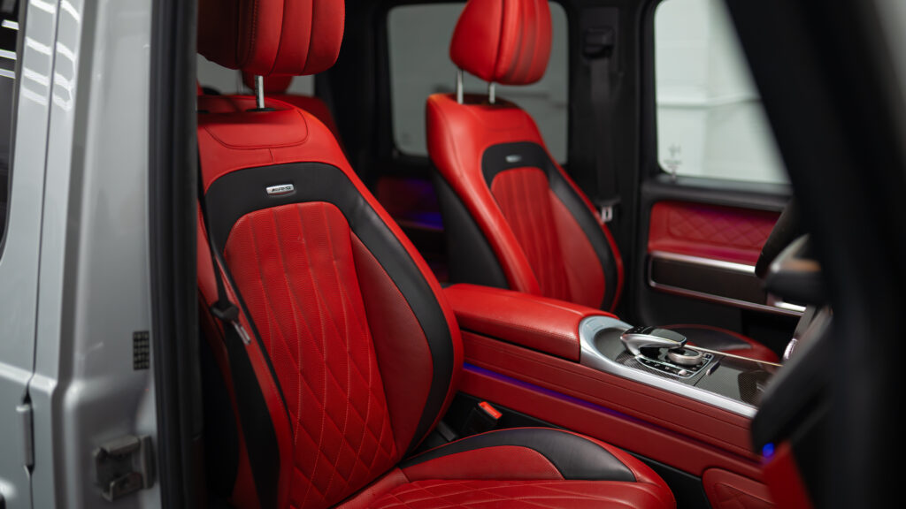 Step into the ultimate blend of power and luxury with our 2021 Mercedes AMG G 63 rental in New York. This G-Wagon features a striking silver exterior and bold red interior that make a lasting impression. Its 4.0L V8 twin-turbo engine delivers 577 horsepower and 627 lb-ft of torque, accelerating from 0 to 60 mph in just 4.5 seconds.