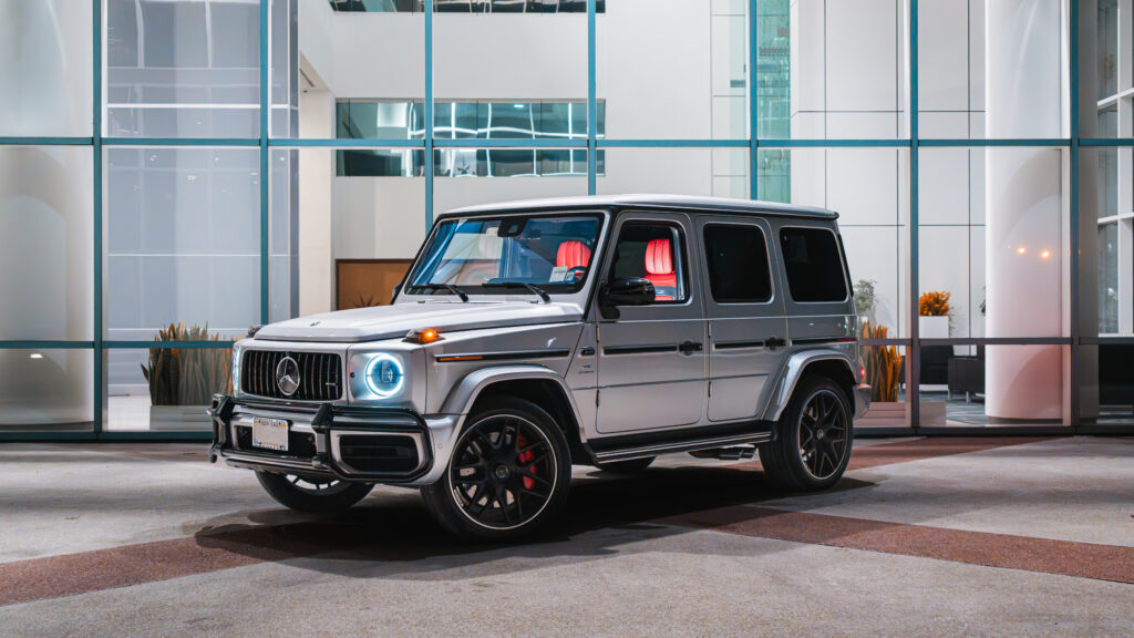 Step into the ultimate blend of power and luxury with our 2021 Mercedes AMG G 63 rental in New York. This G-Wagon features a striking silver exterior and bold red interior that make a lasting impression. Its 4.0L V8 twin-turbo engine delivers 577 horsepower and 627 lb-ft of torque, accelerating from 0 to 60 mph in just 4.5 seconds.